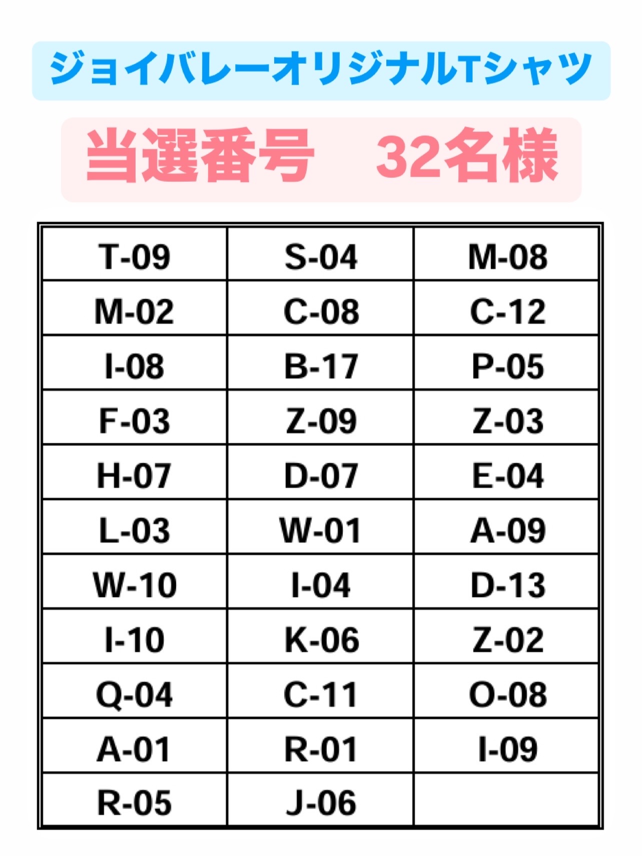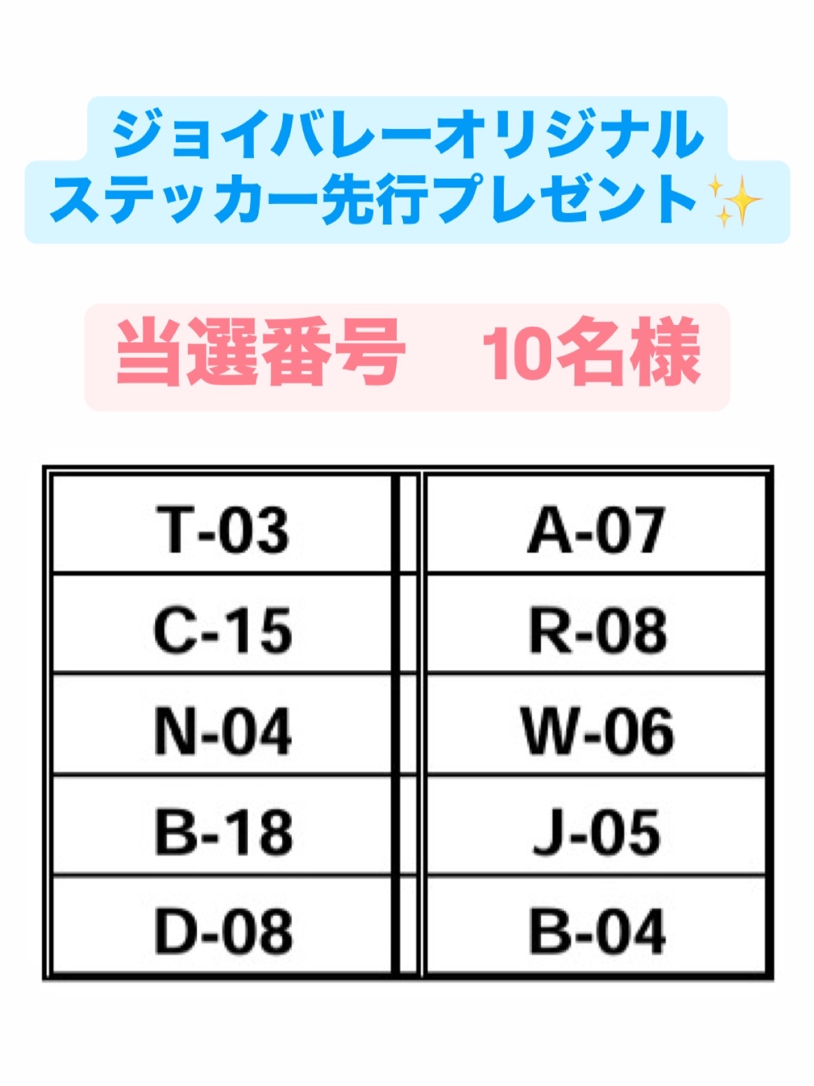 上記当選ナンバーをご確認下さい ※お渡しは当選者発表翌日 05/20(火)より
