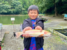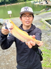| 人生2回目の釣りでアルビノレインボーGet! |